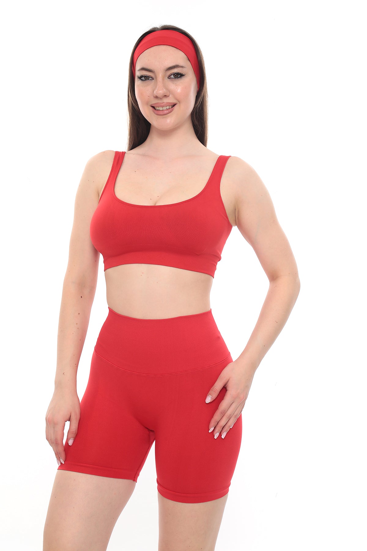 Bel Dikişli Şort - Kırmızı